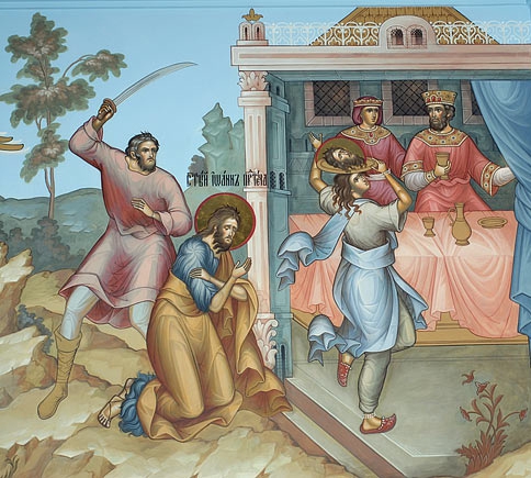 Иоанн Предтеча закончил свою жизнь мученическою смертью. Вскоре после крещения Господня, Иоанн был посажен галилейским царем Иродом Антипой в темницу (Ирод Антипа, был сыном того Ирода Великого, который убил 14 000 вифлеемских младенцев).Иоанн обличал царя Ирода в том, что он, при жизни брата своего Филиппа, женился на его жене Иродиаде, грубо нарушив еврейский обычай. Иродиада озлобилась за это на Иоанна и просила Ирода, чтобы он убил его. Но Ирод не соглашался на это, потому что считал Иоанна за великого пророка и боялся народа, но в угоду ей, посадил его в темницу. Иродиада же не удовольствовалась этим, тем более, что сам Ирод с удовольствием слушал наставления Иоанна и во многом поступал по словам его.